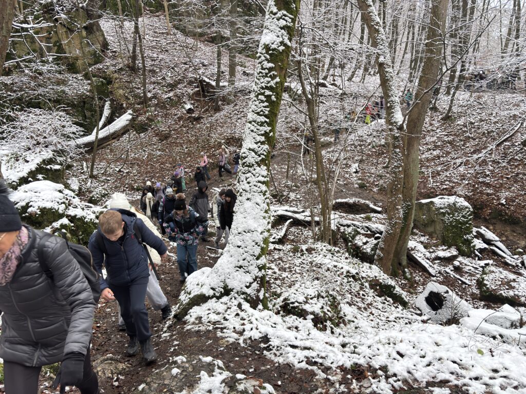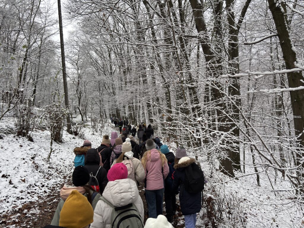 Chociaż do kalendarzowej zimy jeszcze kilka tygodni, to listopadowe zajęcia z turystyki odbyły się w zimowej scenerii. Wyjątkowo liczna grupa, bo aż 58 uczestników, eksplorowała Las Wolski. Trasa wiodła obok ZOO, przez Kopiec Piłsudskiego do rezerwatu przyrody „Panieńskie Skały”. A.D.